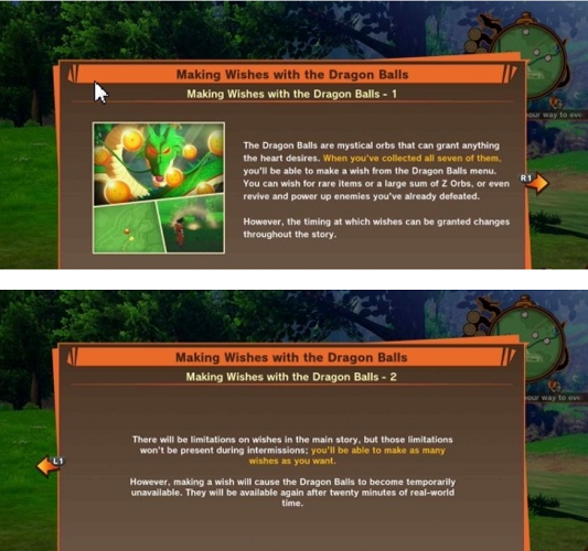 “虽然进行主线剧情的时候,可许的愿望会受到限制,但是章节间的中场休息时间并不会限制次数,可以许无数次愿望。许愿过后,龙珠就会暂时拾取效力。需在现实世界的20分钟后才会恢复实现愿望的效果。”
