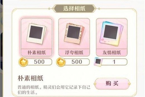 在游戏中大家可以在商店中直接购买朴素相纸或者浮夸相纸,这种相纸500一个。