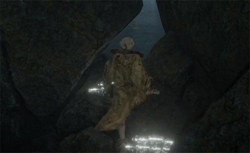 2、我们到达海滩之后可以先找到这里的商人,在商人的背后有一个洞窟;