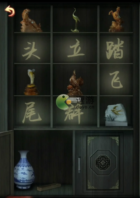 用鸟引开戏台上的人,楼梯下面的箱子密码〈顺序〉【姬王别霸】,得到【电线&螺丝刀】,【螺丝刀】打开戏台上的箱子放入【电线】